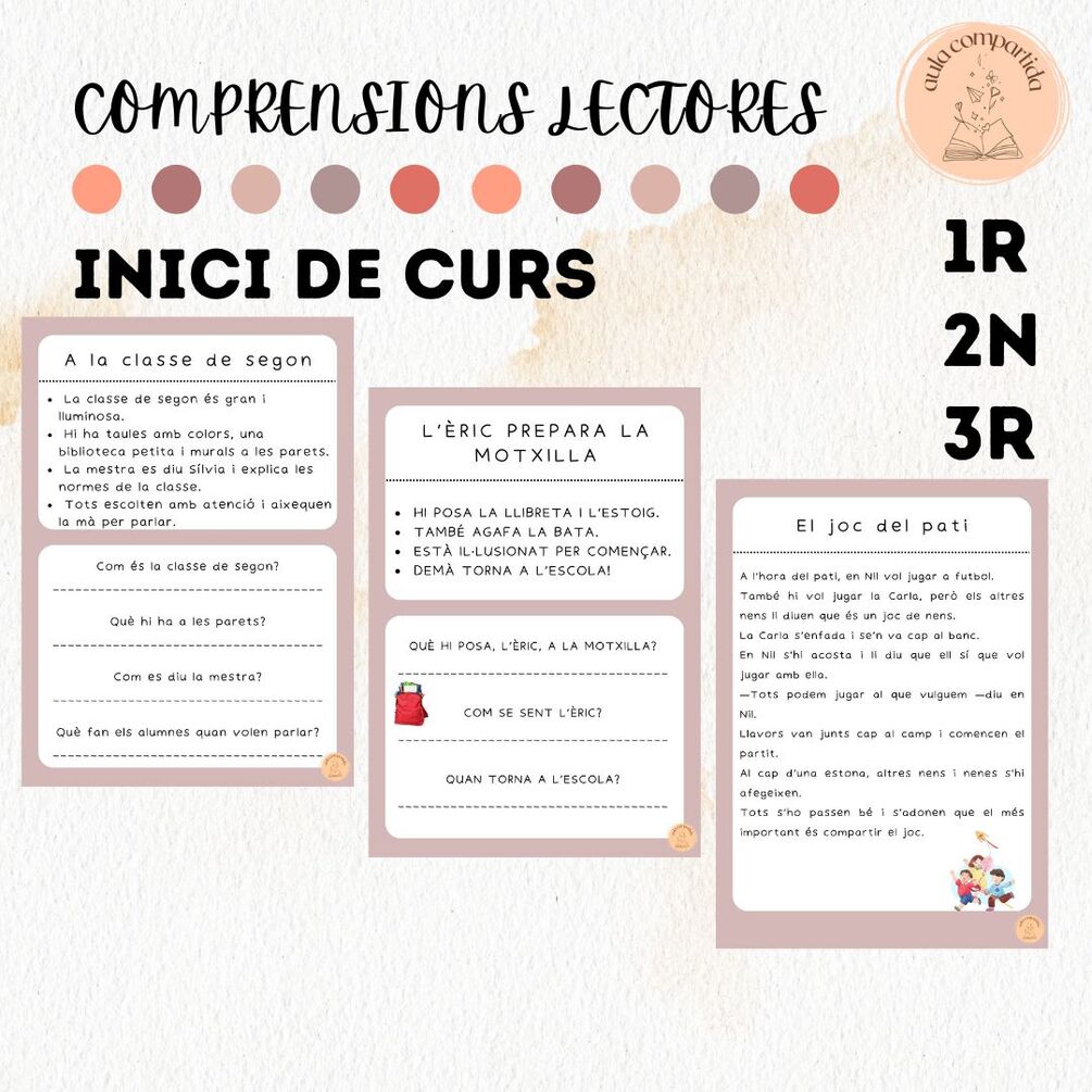 Hem preparat comprensions lectores adaptades a COMUNITAT DE MITJANS, 1R - 2N I 3R, amb textos curts, vocabulari senzill i preguntes de comprensió per treballar de manera amena i motivadora.