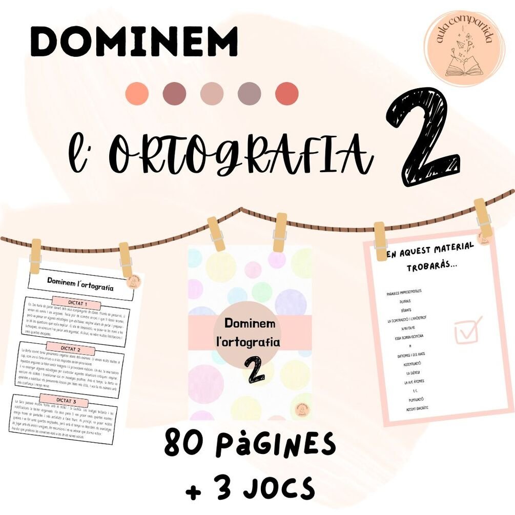 Aquests dos dossiers estan destinats a l'alumnat de 4t, 5è i 6è de primària. El "dominem l'ortografia 2" té activitats d'un nivell més difícil que reforça les normes ortogràfiques treballades al pack 1.
