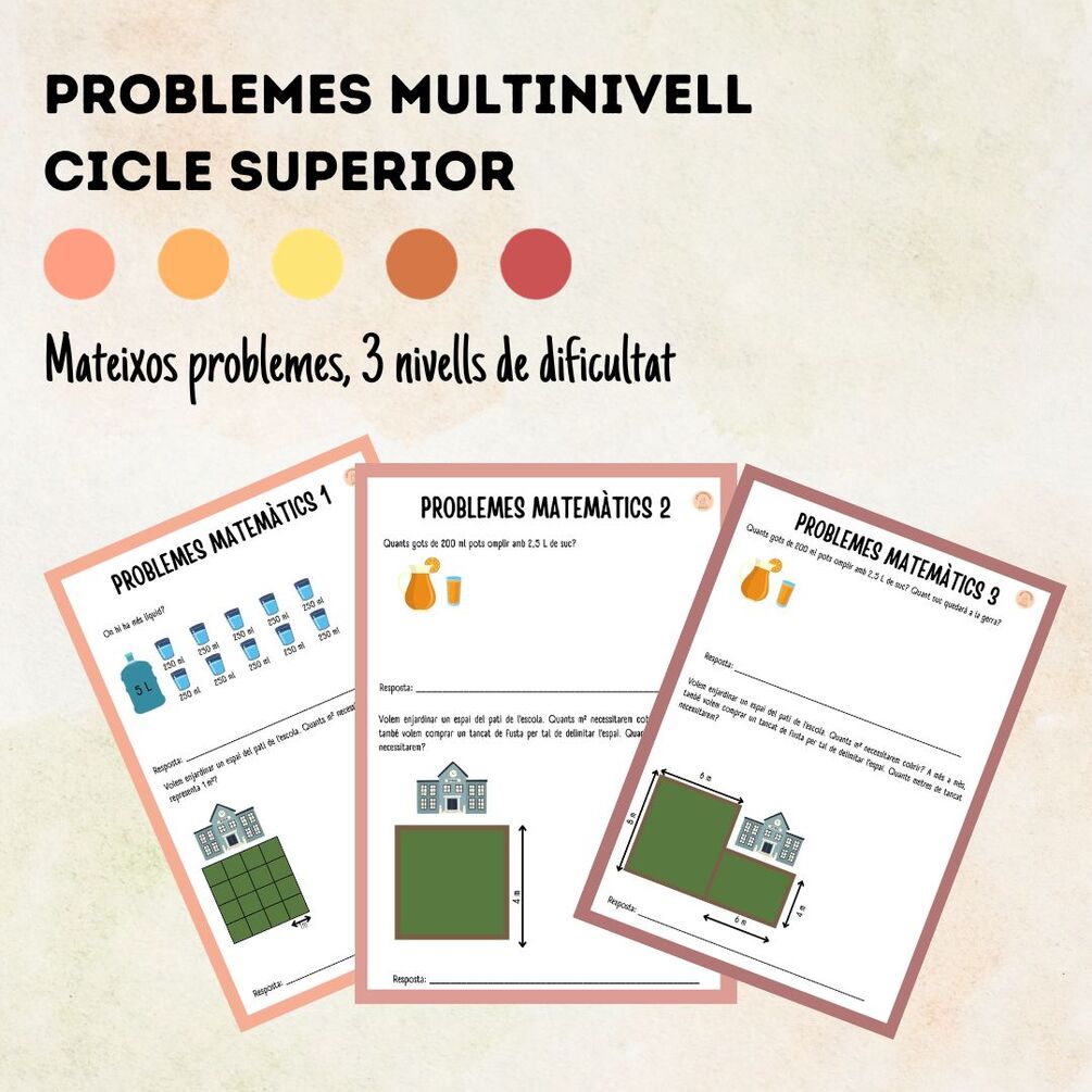 Problemes amb 3 nivells de dificultat , per respetar els diferents ritmes d'aprenentatge.